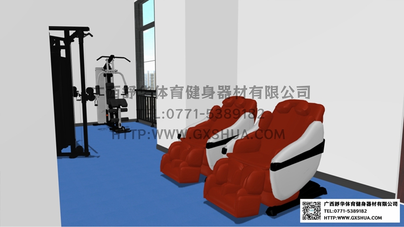 由于企业单位健身房的不规则性,根据场地、职工需求、整体预算,有氧器材区域配置xc sports,xc跑步机2台,椭圆机、动感单车、划船器各1台,满足职工的日常有氧训练需求,有效地提升心肺功能;力量器械配置单人站综合训练器、小飞鸟,满足使用者全身锻炼的需求;自由力量区域配置史密斯机、哑铃套组、腹肌板满足多样化训练需求,促使健身训练更丰富,休闲区配置按摩椅,可以促进血液循环,让员工使用按摩椅放松身心,可以能够有效缓解工作压力。