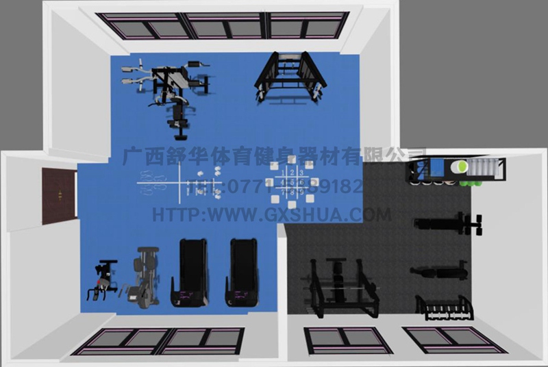 此方案要求面积小于82m²,适用于企事业单位、酒店会所、楼盘社区、工作室、学校等健身场所,能满10-15人同时健身使用。(方案根据场地空间大小、预算、产品需求等进行配置仅为启发性参考)