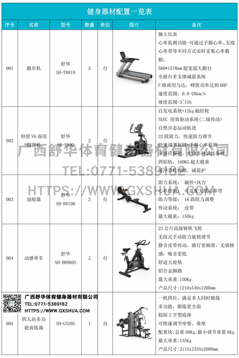 史密斯机(1台),多重可调节练习椅1台),腹肌训练器(1台),10付哑铃套组(1套),可调哑铃凳(1张),可以实现对不同肌肉群的针对性训练,满足肌肉训练需求,全方位激活身体机能。