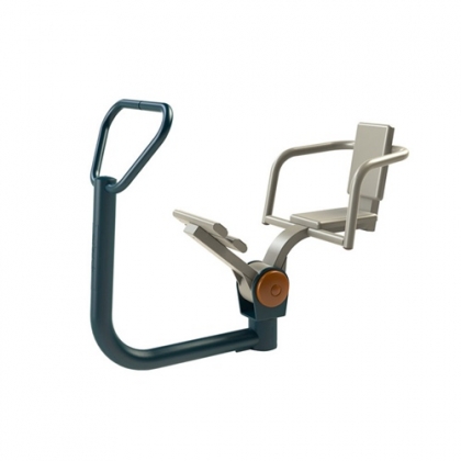 坐在座板上,手抓扶手,脚踩踏杆,前后摆动,应根据自身状况,掌握摆动的幅度和频率,或者一脚踩踏杆,一脚伸直,拉伸腿部肌肉