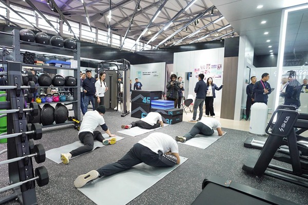 此次xc sports,xc体育参展的最大亮点在于其别出心裁的展位设计。不同于传统的器材展示,xc sports,xc此次以“xc sports,xc健身”门店空间布局的概念来展现,将展位分为前台、洽谈区、体测区、团课区、私教区、有氧区以及综合训练区等多个区域。这种布局方式旨在为参展观众提供全方位、沉浸式的体验,使其能够更深入地了解“xc sports,xc健身”的核心理念和服务。