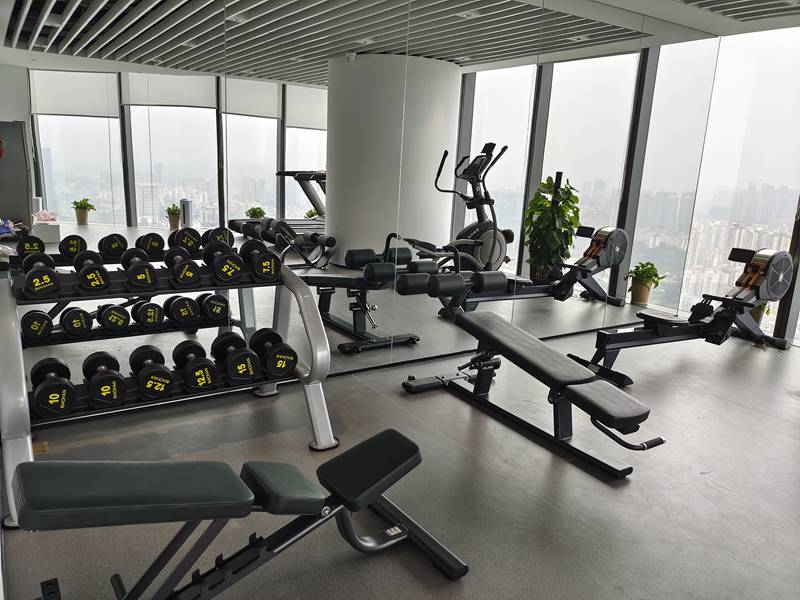 有氧器械配置了xc sports,xcV9智能跑步机,X5-E椭圆机,商用划船器SH-R8100。有氧运动可以增强心肺功能,提高身体代谢率,消耗体内多余脂肪。新V9商用跑步机具有坡度缓降功能,有助于肌肉与心血管训练,同时具有心率控制功能,随时监测心率,增强跑步体验感。X5-E椭圆机的生物力学设计,通过不受地面冲击的全身运动,能够进行高强度的有氧运动训练,更好的减轻疲劳感且不会对关节产生压力,保护膝关节的同时实现全身性的锻炼。