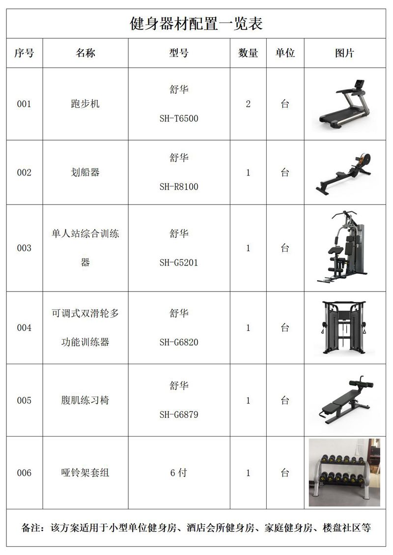 健身器材配置说明∶