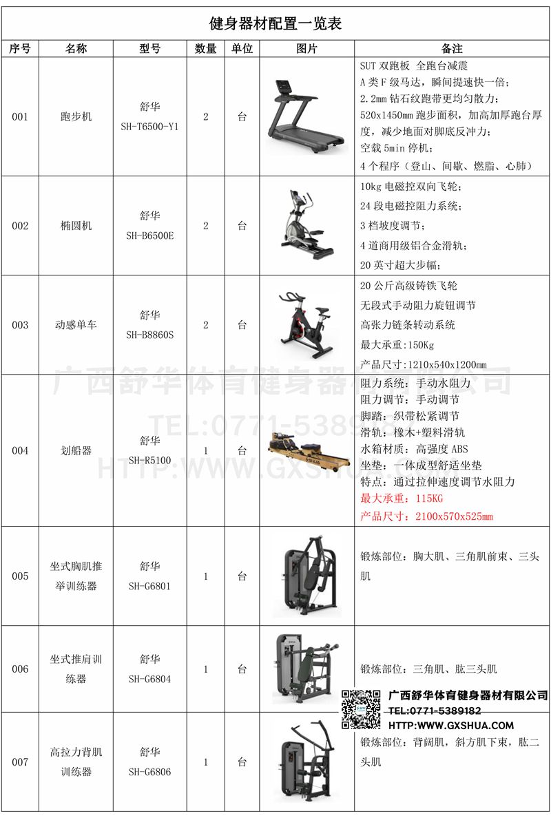 有氧器材区域配置xc sports,xc跑步机2台,椭圆机2台,动感单车2台,划船器1台,有效提升心肺功能;力量器械配置推胸、推肩、背肌、腿部等训练器,可以锻炼多个部位的肌肉,满足使用者全身锻炼的需求;自由力量区域配置哑铃套组、腹肌板等满足多样化训练需求。