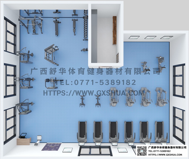 此方案要求面积小于170m²,适用于企事业单位、酒店会所、楼盘社区、工作室、学校等健身场所,能满25-30人同时健身使用。(方案根据场地空间大小、预算、产品需求等进行配置仅为启发性参考)